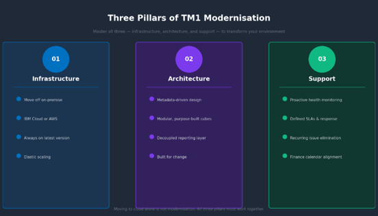That last point is increasingly critical. If your organisation has an AI strategy that involves TM1 data, and TM1 is crashing every month, you will have no confidence, nor will the AI team or the board in using those cubes as a foundation. Stable support is not the end goal. It is the prerequisite for everything else.